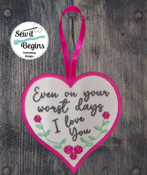 Even on Your Worst Days I Love You 2 Versions 4″ Heart Decoration