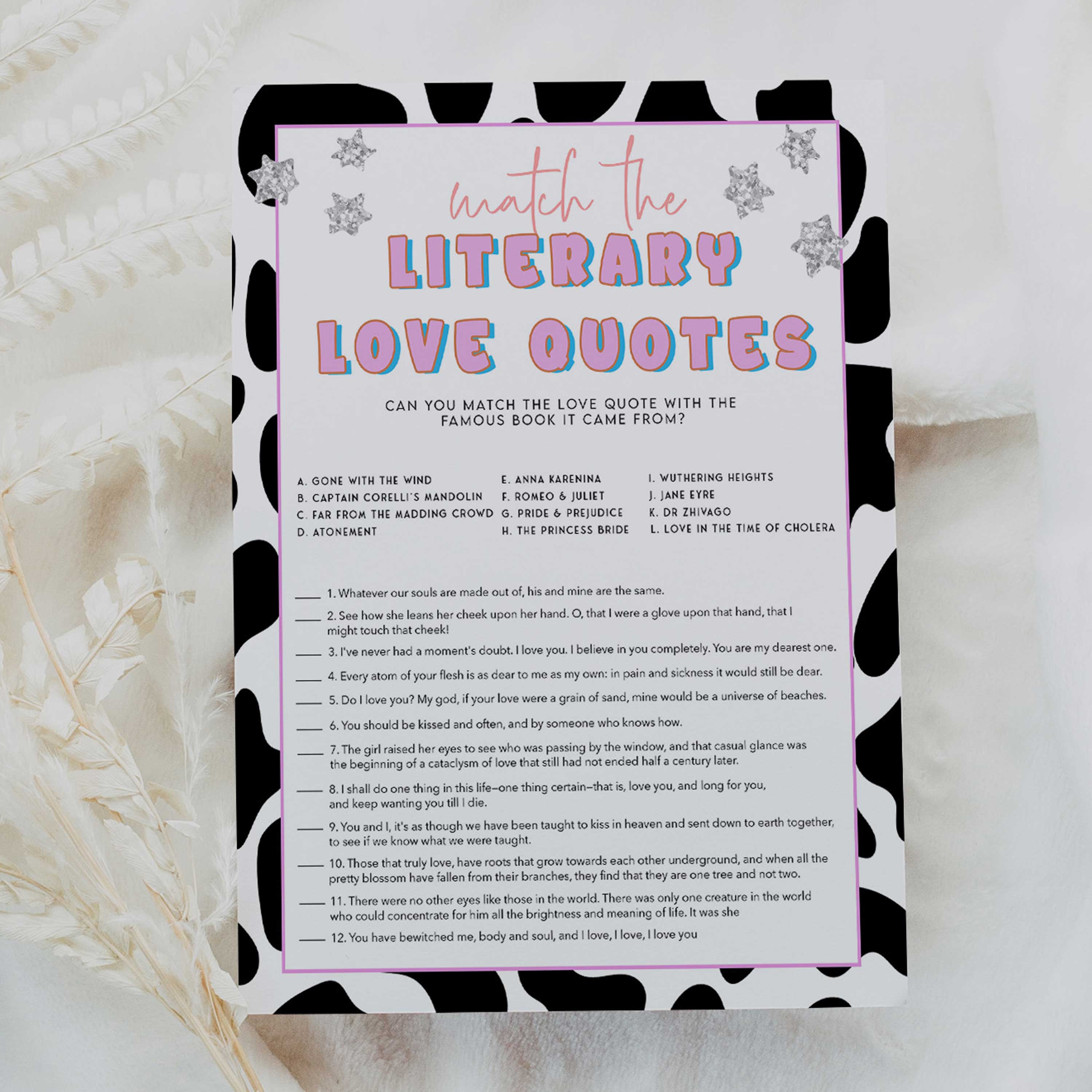 Literary Love Quotes Game Printable Bride Tribe Bridal Shower