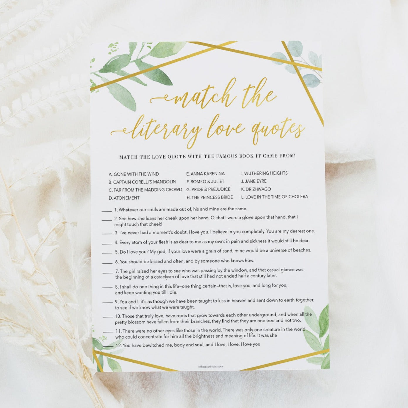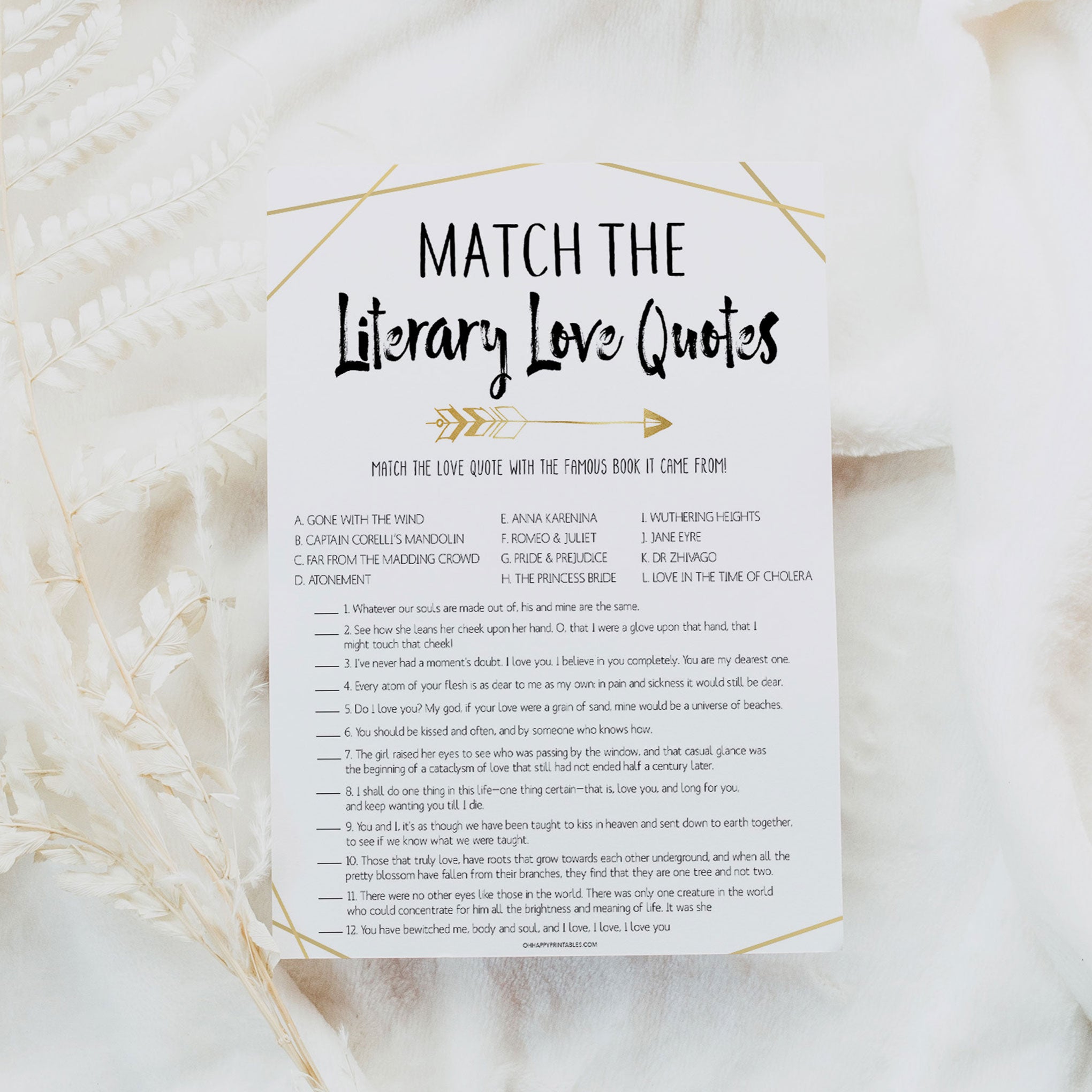 Literary Love Quotes Game Printable Gold Foil Bridal Shower