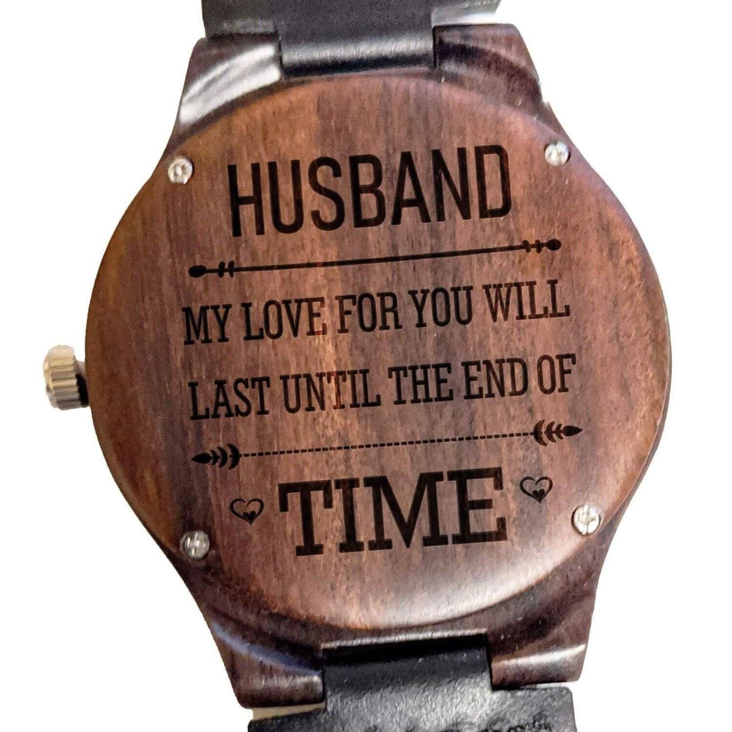 Engraved Wooden Watch, I Love You Till the End of Time, Inspiring